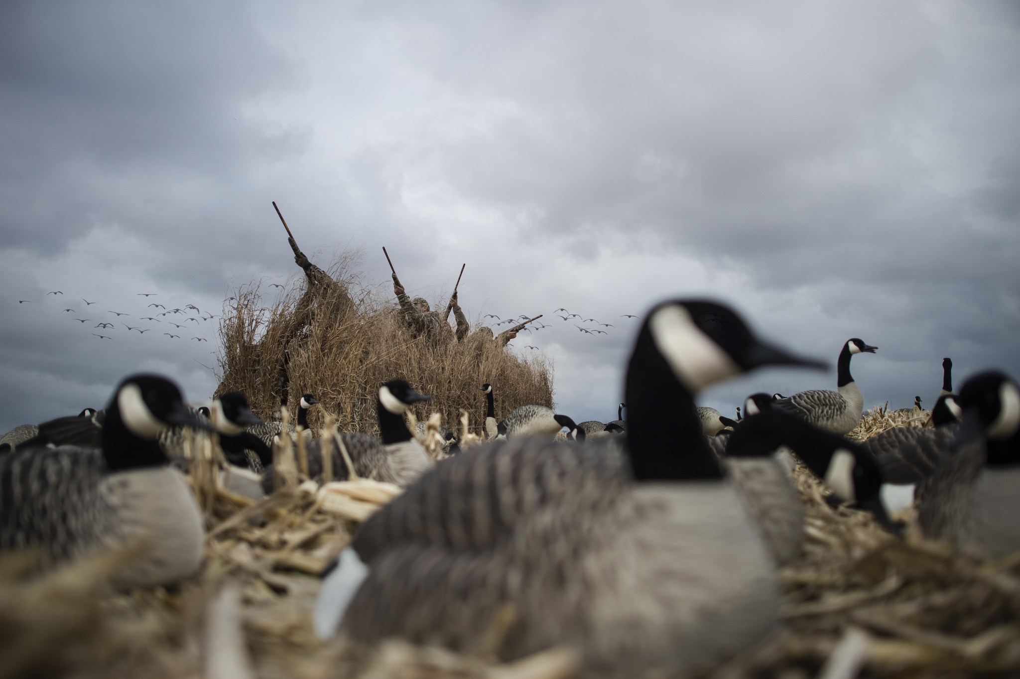 Later in the year when the corn and beans are harvested, we go MOBILE! If we absolutely have to, we turn to hunting with the ever popular laydown blinds. But any reputable outfitter/guide will tell you that in a very short time period, the geese have become extremely wary of those blinds. Those little “humps” that stick out amongst countless decoy spreads across the country have made geese much more challenging to hunt out of them. Most times and especially later during the season when dealing with pressured and educated birds, the geese will avoid them at all costs.
